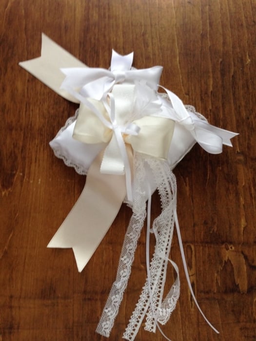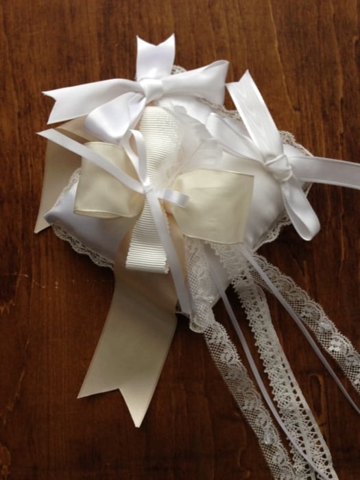 また、ホワイトからシャンパンゴールド系までの優雅な白で計算されたカラーのリングピローです。